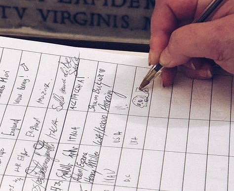 We walked the ancient and occasionally rainy city, punished by basalt stone and a chaotic structural approach to sidewalks. We wondered aloud why we live elsewhere and not in a particular bowl of pasta. We looked at the bones of capuchin monks and feasted on artichoke hulls and Renaissance.